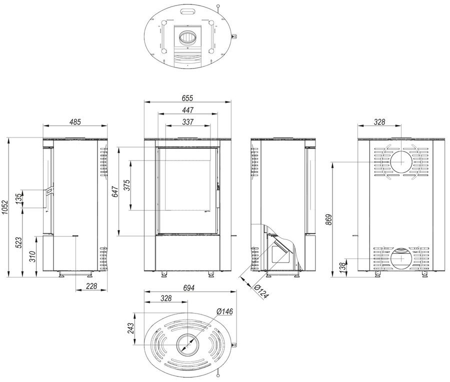 | Prijungimo prie kamino variantai: | iš viršaus / iš galo |