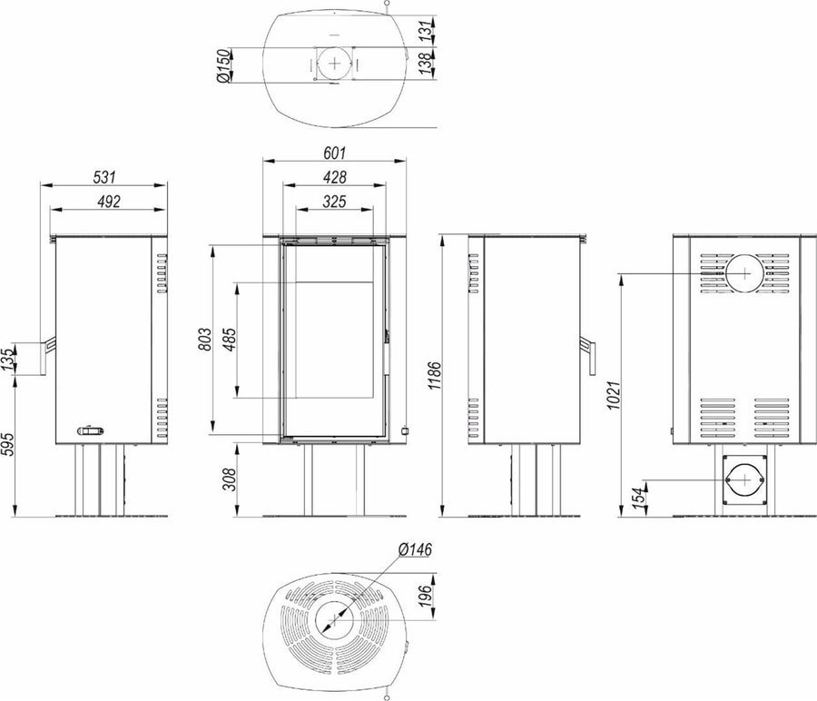 | Dūmtraukio skersmuo | 150 mm |