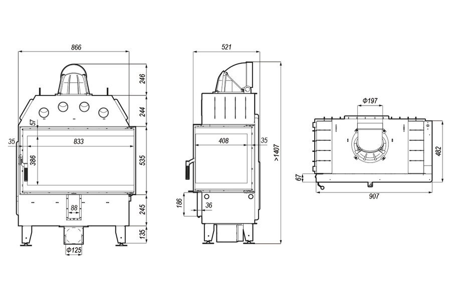 | Oro tiekimo jungties skersmuo | 125 mm |