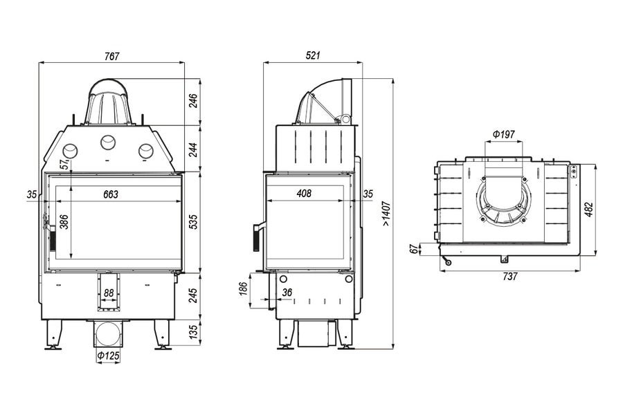 | Oro tiekimo jungties skersmuo | 125 mm |