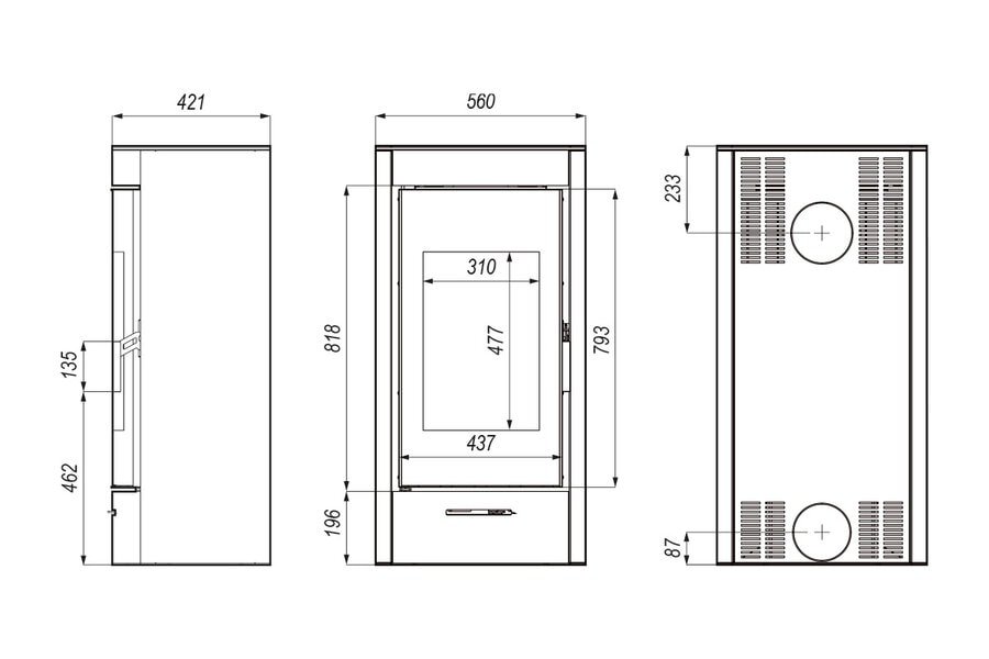 | Prijungimo prie kamino variantai: | iš viršaus / iš galo |