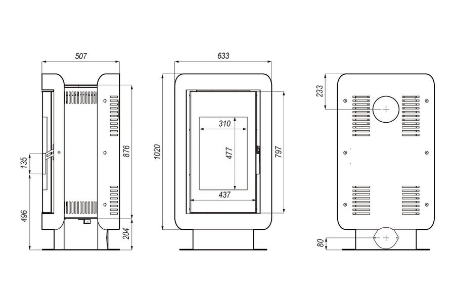 | Prijungimo prie kamino variantai: | iš viršaus / iš galo |