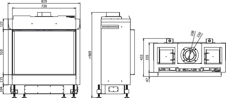 | Dūmtraukio skersmuo | 108 / 150 mm |