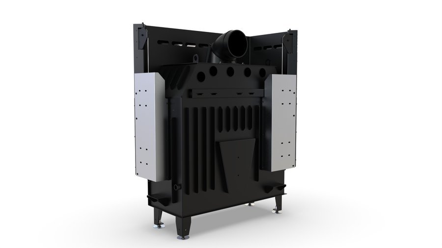 - Juodas metalinis apdailinis rėmelis aplink pakurą