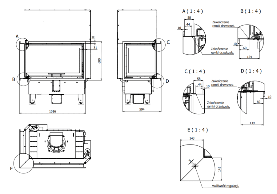 - Židinio kapsulė kampiniu kairės pusės stiklu Defro Home Intra ME BL G pakeliamomis durelėmis.