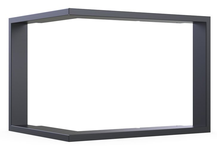 - Juodas metalinis apdailinis rėmelis aplink pakurą
