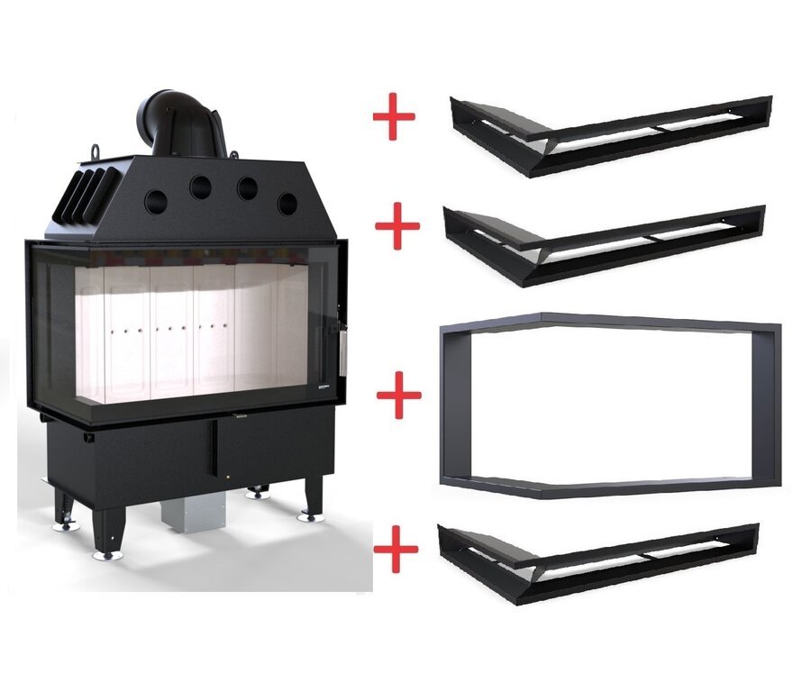 - Juodas metalinis apdailinis rėmelis aplink pakurą