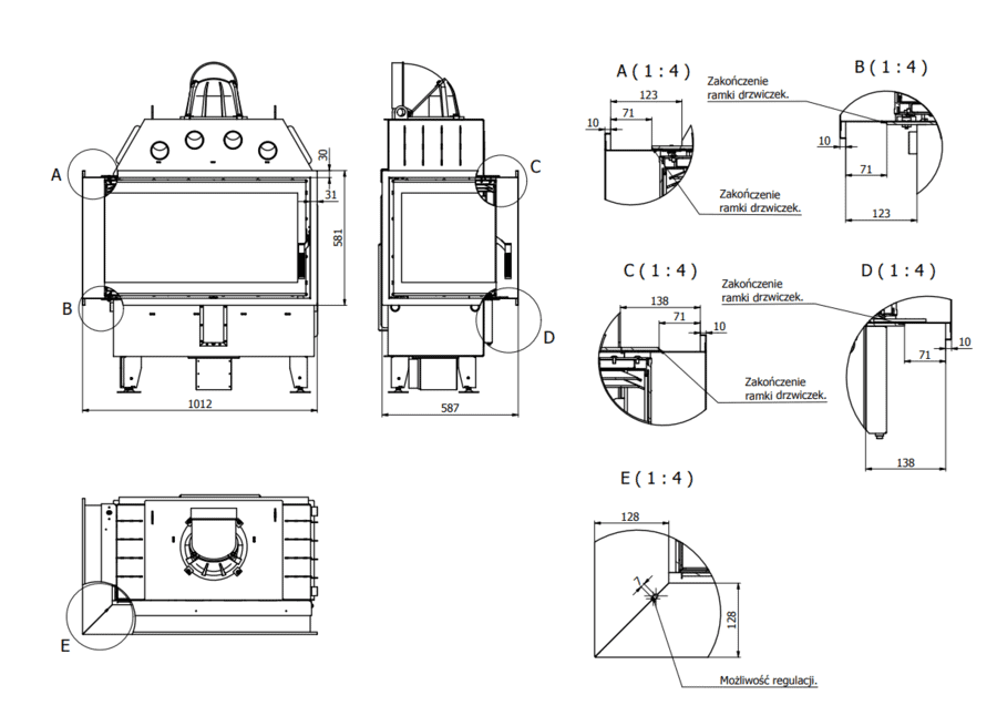 - Židinio kapsulė kampiniu kairės pusės stiklu Defro Home Intra ME BL atidaromomis durelėmis.