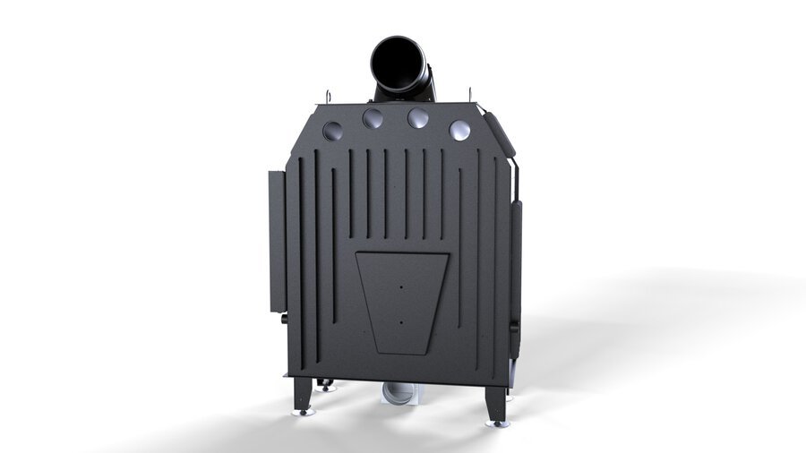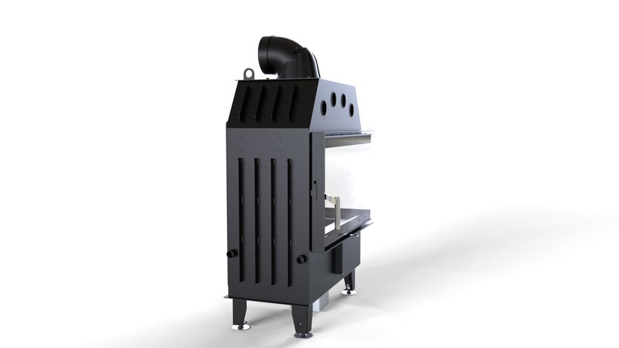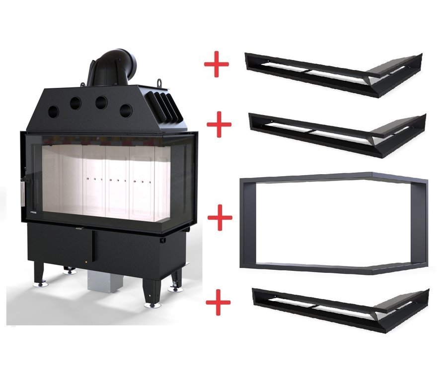 - Juodas metalinis apdailinis rėmelis aplink pakurą