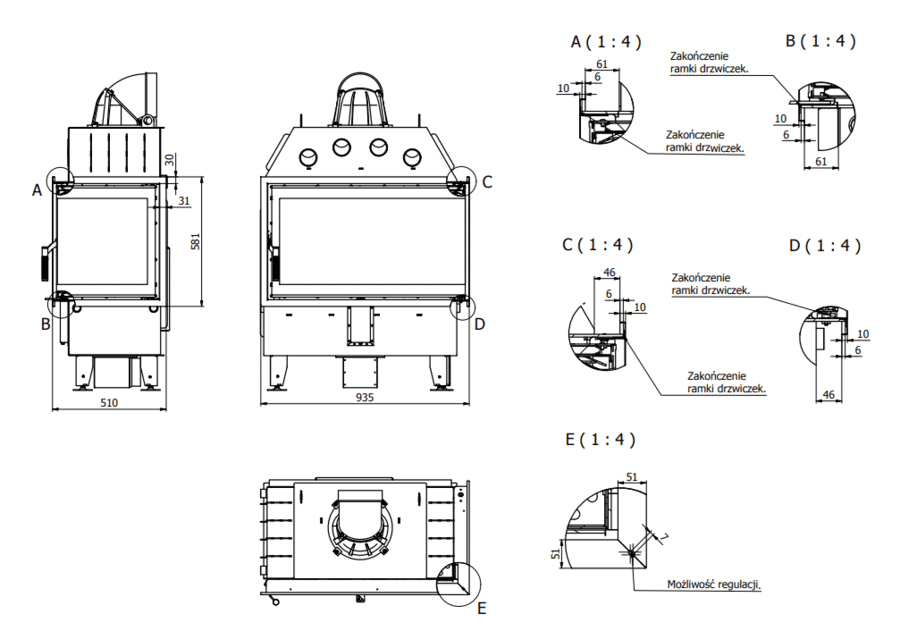 - Židinio kapsulė kampiniu dešinės pusės stiklu Defro Home Intra ME BP atidaromomis durelėmis.