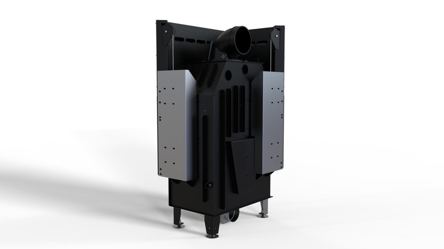 - Juodas metalinis apdailinis rėmelis aplink pakurą