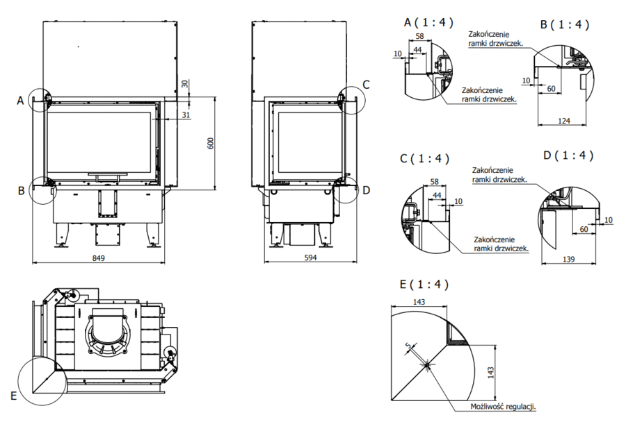 - Židinio kapsulė kampiniu kairės pusės stiklu Defro Home Intra SM BL G pakeliamomis durelėmis.