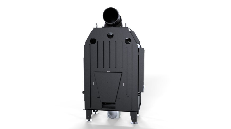 - Juodas metalinis apdailinis rėmelis aplink pakurą