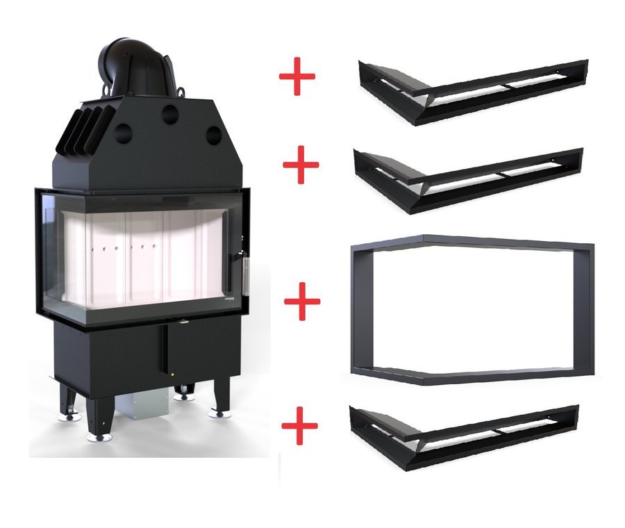- Juodas metalinis apdailinis rėmelis aplink pakurą