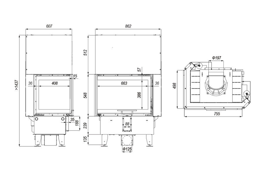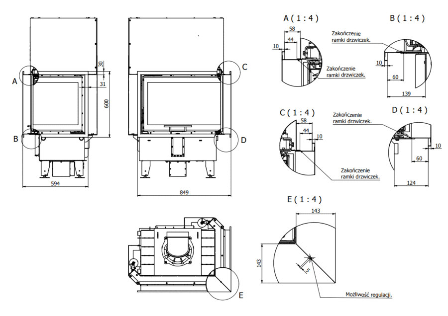 - Židinio kapsulė kampiniu dešinės pusės stiklu Defro Home Intra SM BP G pakeliamomis durelėmis.