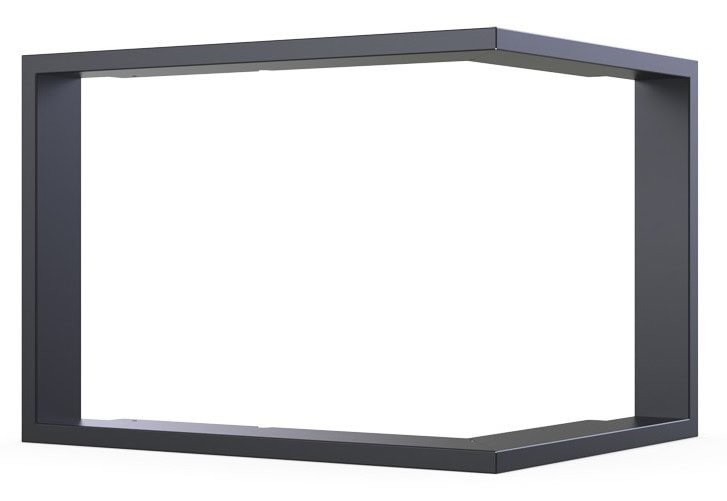 - Juodas metalinis apdailinis rėmelis aplink pakurą