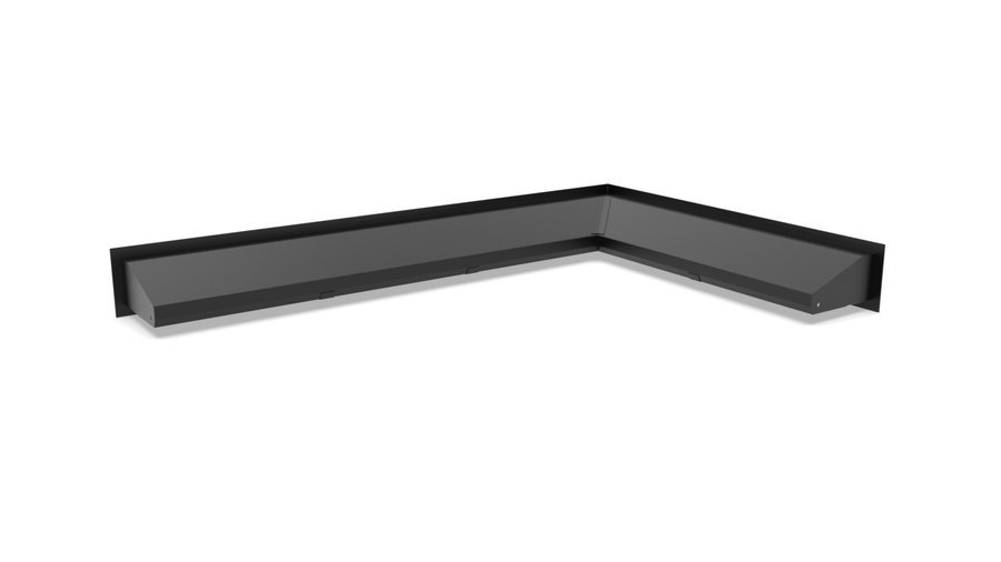 - Juodas metalinis apdailinis rėmelis aplink pakurą