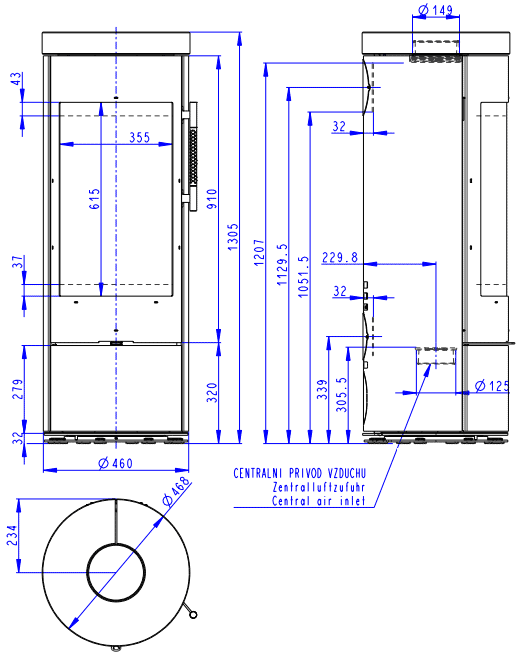 | Dūmtraukio skersmuo | 150 mm |