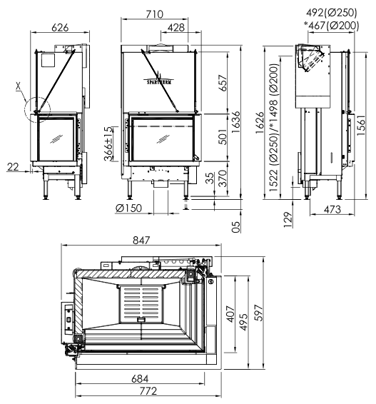 | Dūmtraukio skersmuo | 200 mm |
