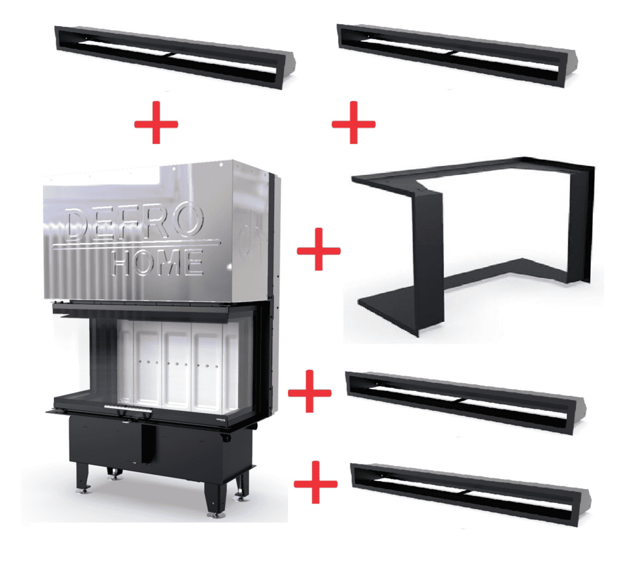- Juodas metalinis apdailinis rėmelis aplink pakurą