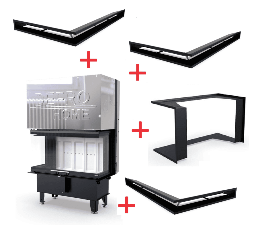 - Juodas metalinis apdailinis rėmelis aplink pakurą