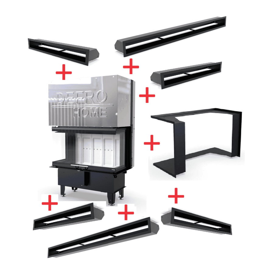 - Juodas metalinis apdailinis rėmelis aplink pakurą