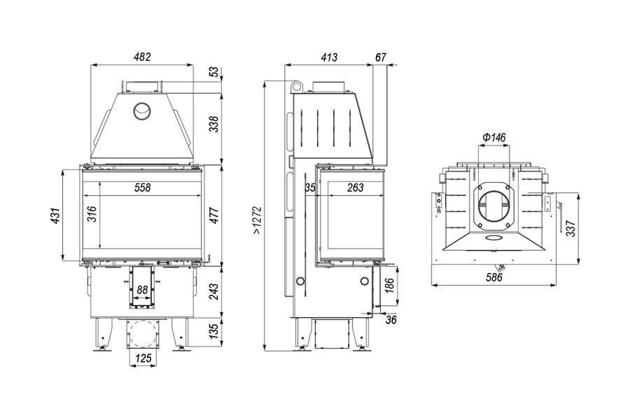 | Dūmtraukio skersmuo | 150 mm |