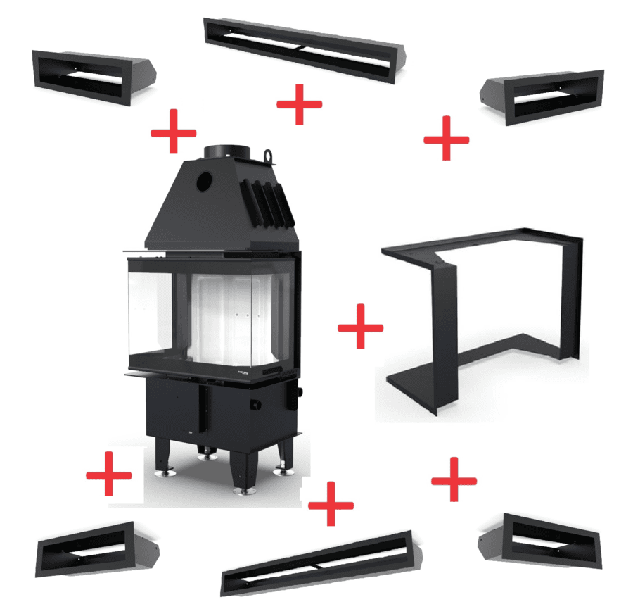- Juodas metalinis apdailinis rėmelis aplink pakurą