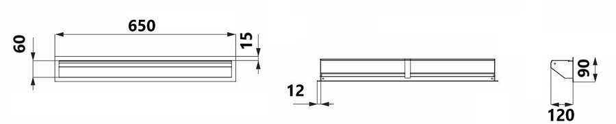 | Išorės matmenys (ilgis x aukštis x gylis) | 650 x 90 x 120 mm |
