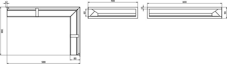 Tunelinės kampinės židinių konvekcinės grotelės 400 x 600 x 90 (80) RIGHT.