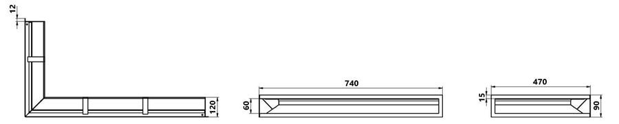 Tunelinės kampinės židinių konvekcinės grotelės 470 x 740 x 90 (120) RIGHT.