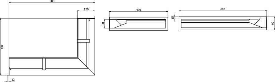 Tunelinės kampinės židinių konvekcinės grotelės 600 x 400 x 90 (120) LEFT.