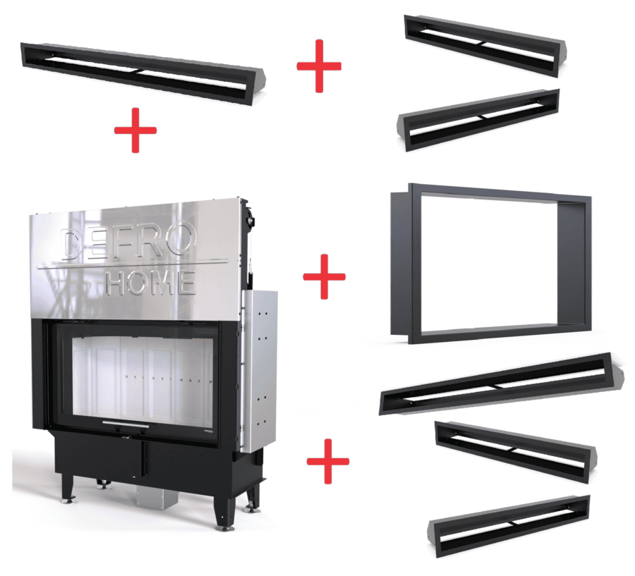 - Juodas metalinis apdailinis rėmelis aplink pakurą