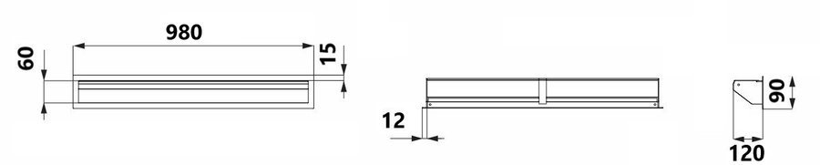 | Išorės matmenys (ilgis x aukštis x gylis) | 980 x 90 x 120 mm |